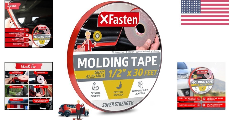 - Professional Grade Automotive Tape - 1/2" x 30' for Molding & Trim Installation