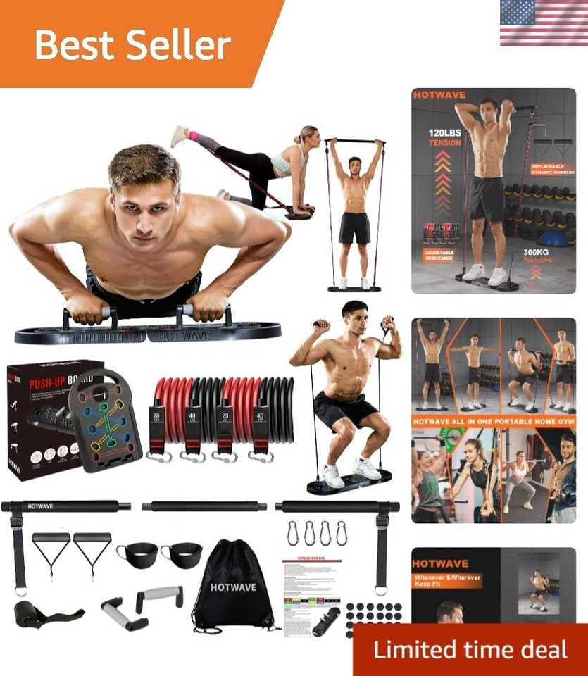 Complete Portable Home Gym: This versatile exercise pack includes a foldable pushup board, a 3-section bar, 4 resistance bands, 2 ankle straps, and a door anchor, fulfilling all your workout needs.