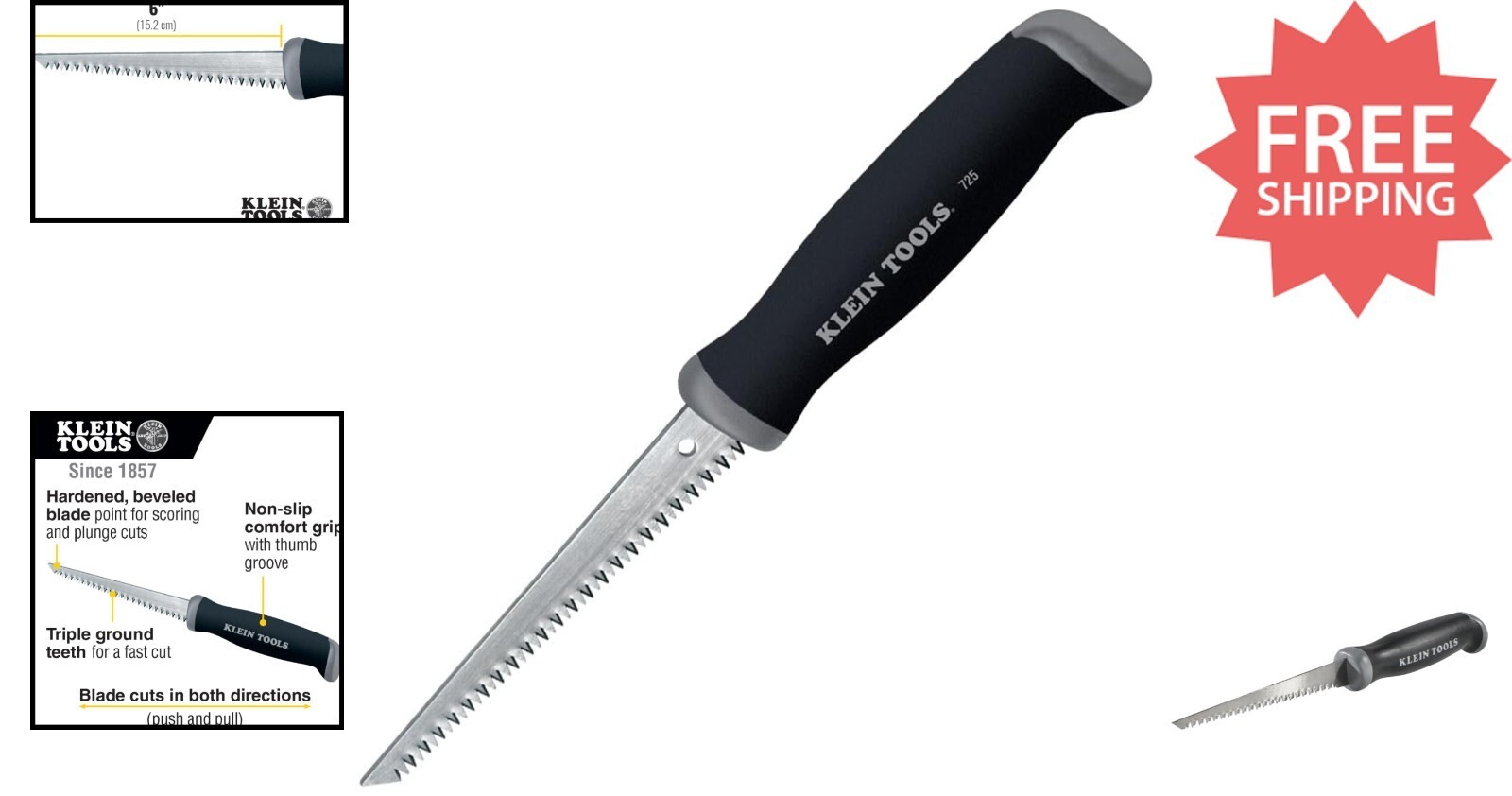 Klein Tools Key Hole Saw is a professional-grade hand saw designed for cutting drywall, wallboard, plywood, and plastic with ease. Featuring a triple-ground teeth blade for swift, efficient cuts in both push and pull motions, it ensures reliable performance and durability. The hardened, beveled blade point allows for precise scoring and plunge cuts, while the ergonomic handle offers strength and comfort. Its curved front-end design facilitates comfortable two-hand operation, making challenging tasks more manageable. Since 1857, Klein Tools has been dedicated to manufacturing high-quality, robust tools built to withstand the rigors of professional use. Trust in our craftsmanship and American heritage for your next project.