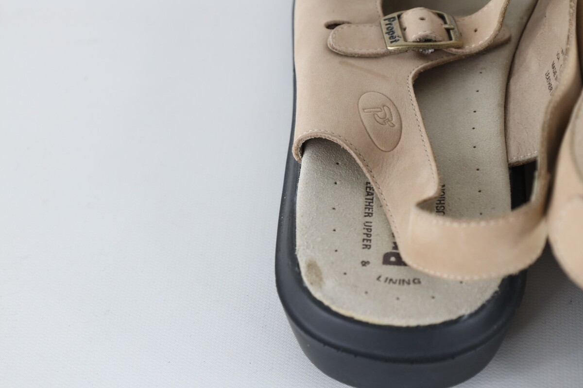 - Propet Mens 13 M Suede Leather Air Cell Cushion Strap Fisherman Sandals Beige