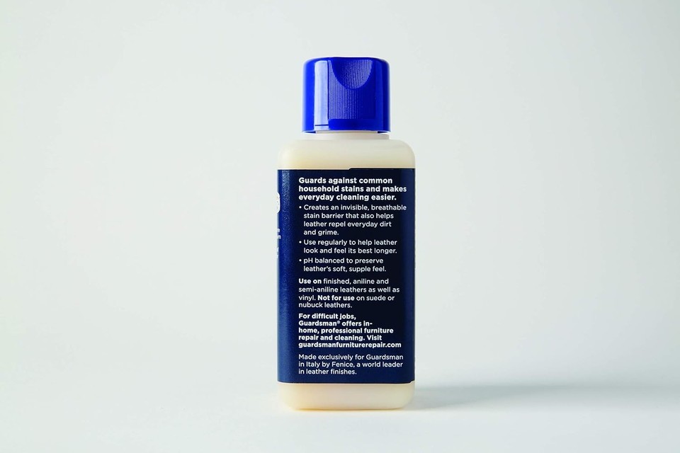 Guardsman Clean and Renew for Leather gently yet thoroughly removes soil and surface grime to keep leather and vinyl looking their best. Unlike many leather cleaning products, it leaves no residue which can harm leather's flexibility. This specially formulated leather cleaner is made exclusively for Guardsman in Italy by Fenice, a world leader in leather finishing technology; it contains no dulling waxes, oils, or additives often present in all-in-one cleaner/conditioners. Guardsman has been a leader in furniture care since 1915, delivering quality products and services for the protection, care, and repair of wood, fabric, and leather furnishings and bedding products. Guardsman is an established, secure, and committed partner in maintaining the beauty and extending the life of your furniture.