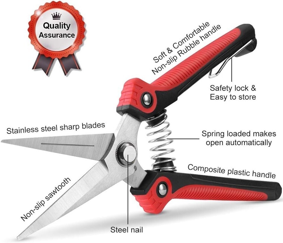 Make Precise Cuts: Long straight blades navigate tight spaces effortlessly, perfect for pruning dead flowers, shrubs, and harvesting fruits.