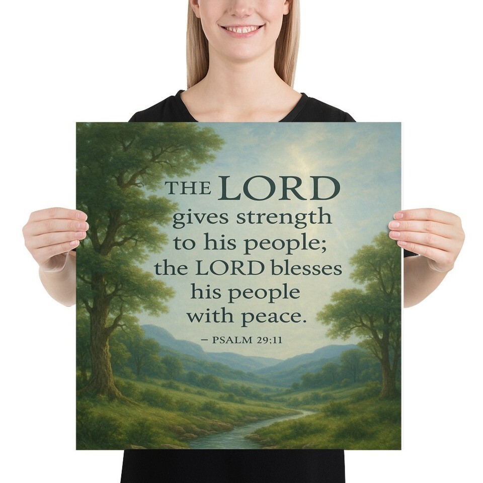 - Psalm 29:11 Poster – The Lord Gives Strength and Peace – Christian Wall Art