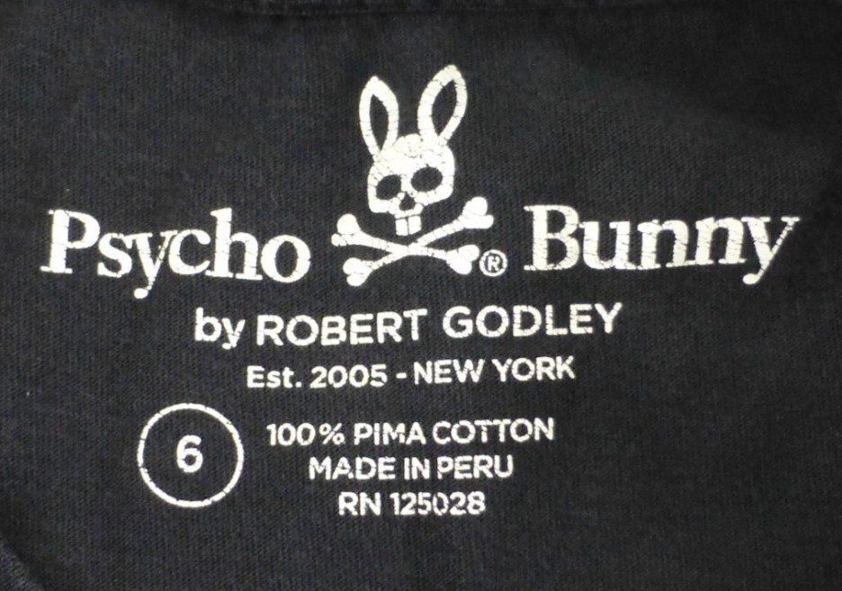 Psycho Bunny By Robert Godley Black Graphic T-Shirt Size 6 Pima Cotton
