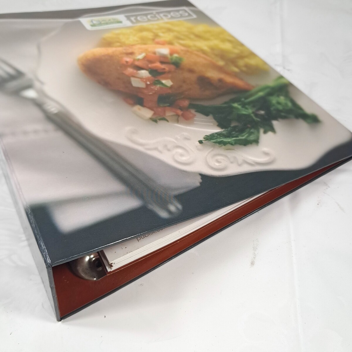 Binder with dividers and some recipe cards. Cards some marks, but most are clean. Binder has some wear/scratches/scuffs. See pics.