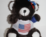 Puli International, USA, American Flag T Shirt, Dark Brown and White Plush, Teddy Bear, Approx 8 inch, Red, White and Blue, Bow, Soft Toy, Tony, Stuffed Animal, 4th of July