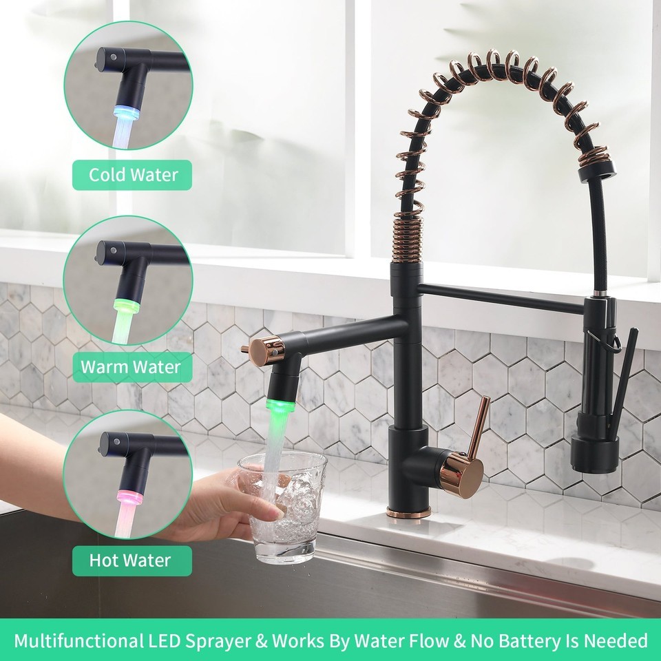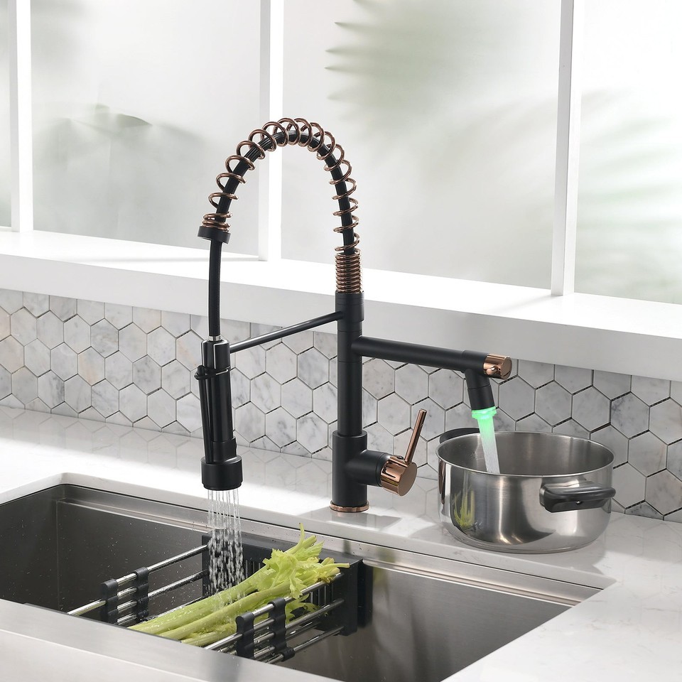 Black and Rose Gold Kitchen Sink Faucet