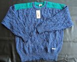 A vendre est un nouveau avec des etiquettes Vintage 1980 Silvy Tricot Italian Ski Racing Blue Green Knite Sweater 52 L. Le haut de l'epaule gauche est troue.