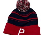 - Puma Raised P Removable Pom Cuffed Beanie – Winter Knit Hat – Burgundy /Blue