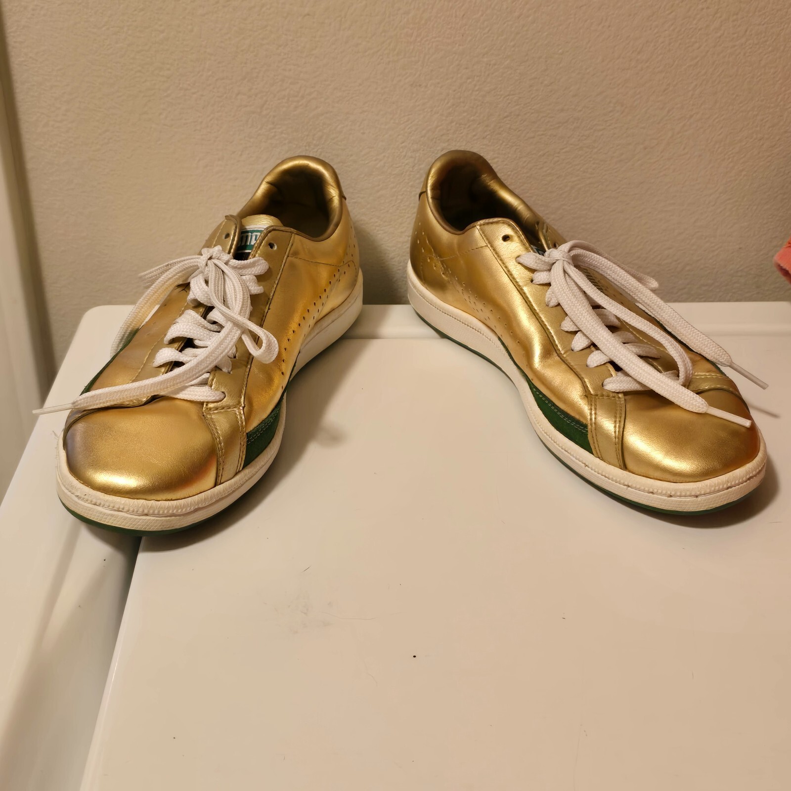 - Puma Shoes Match LE S Metallic Gold / Green Sneakers 343396 02 Mens 6.5