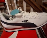 The Puma Turin II Men's Sneakers in size 10M are a stylish and comfortable option for casual wear. With a low top design, lace-up closure, and solid white color, these sneakers feature a rubber outsole for added durability. The Puma Turin model offers a standard shoe width and leather upper material, making them a versatile choice for the summer, fall, and spring seasons. Expertly crafted by PUMA, these sneakers are a great addition to any man's wardrobe.