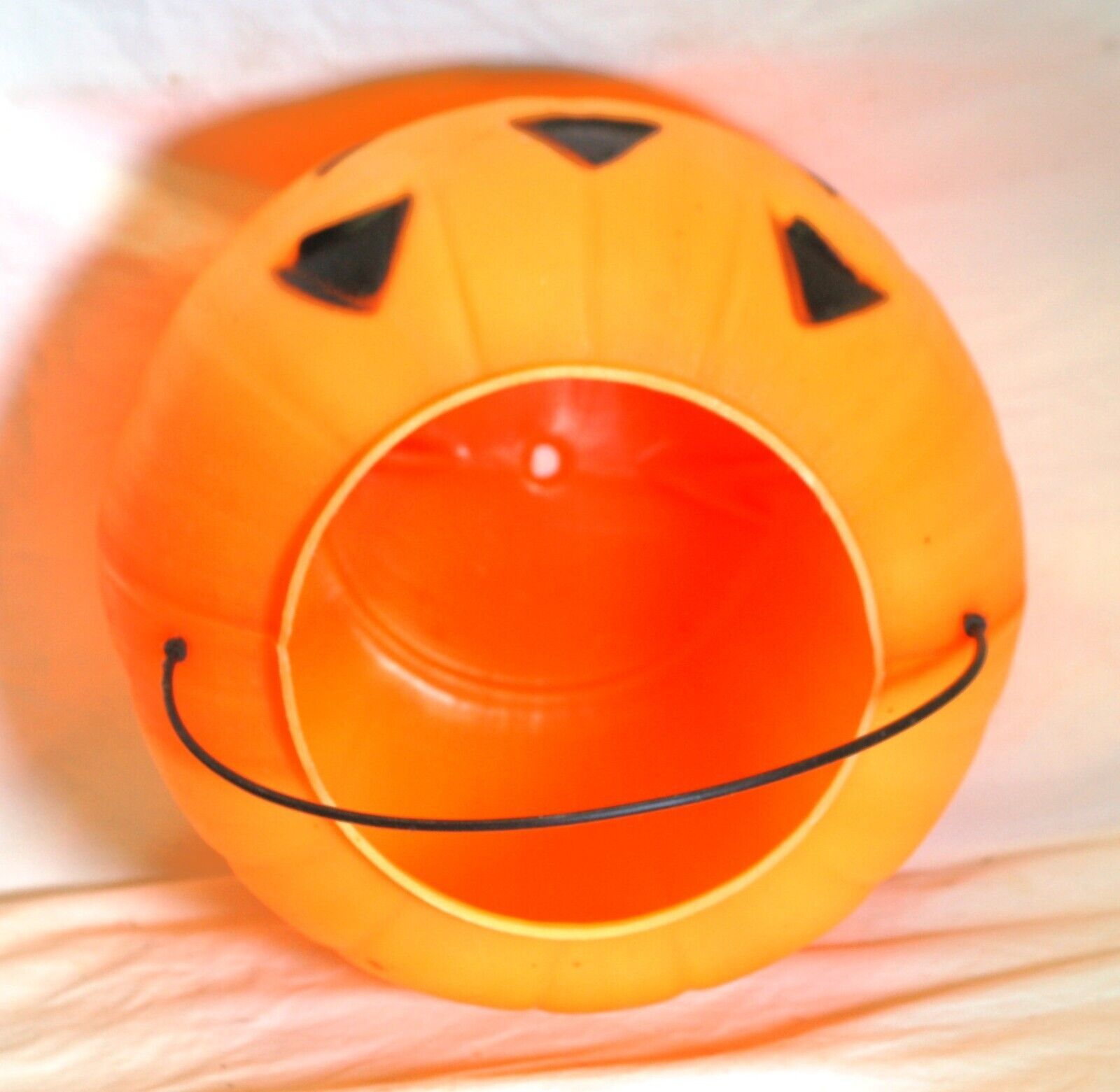 Pumpkin Pail Blow Mold Halloween Candy Bucket Plastic