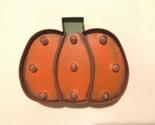 Here is a new led pumpkin, this is made of metal and has attached led lights on front of pumpkin, 9 lights, it has a burnt orange finish with a green stem and is a distressed finish, this requires 2 AA Batteries that i am including, this can hang or sit, measures 8 inch wide by 6.5 inch high and is 2 inch thick, nice decorative led pumpkin