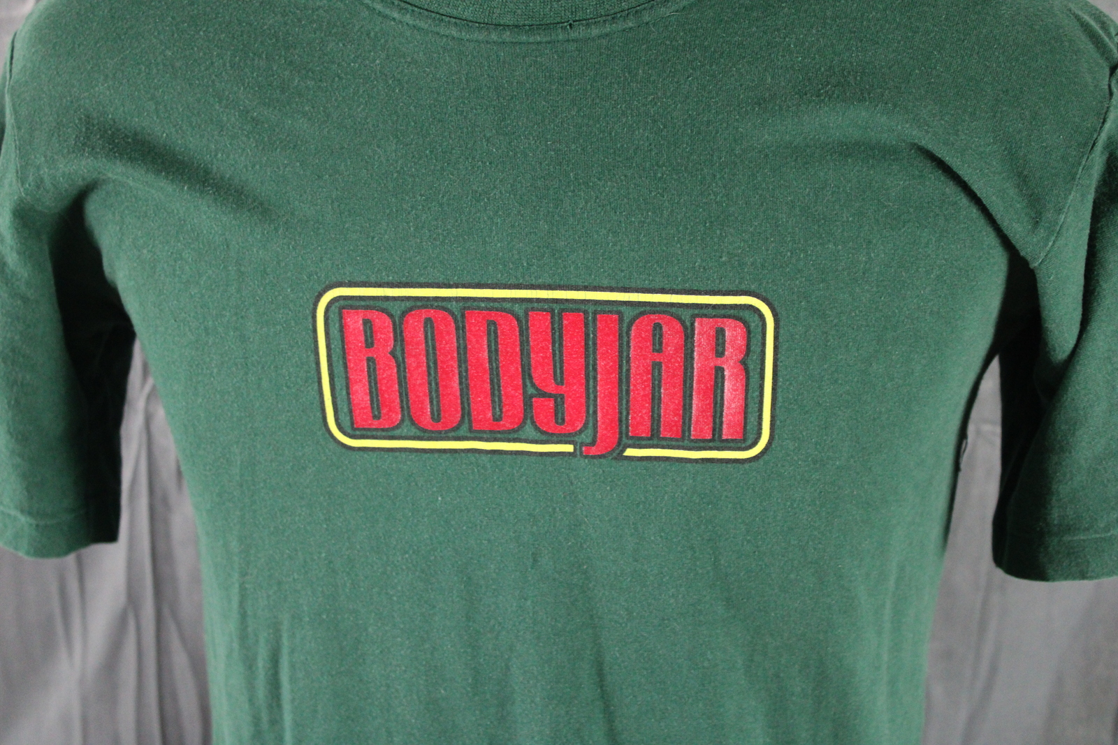 Up for sale is a vintage punk band shirt. It has a green base colour with the Body Jar screened across the chest in red. What a great shirt do not miss out on it.
