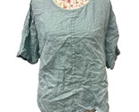 - Pure Jill Garment Dyed Linen Top Aqua Blue Short Sleeve PM