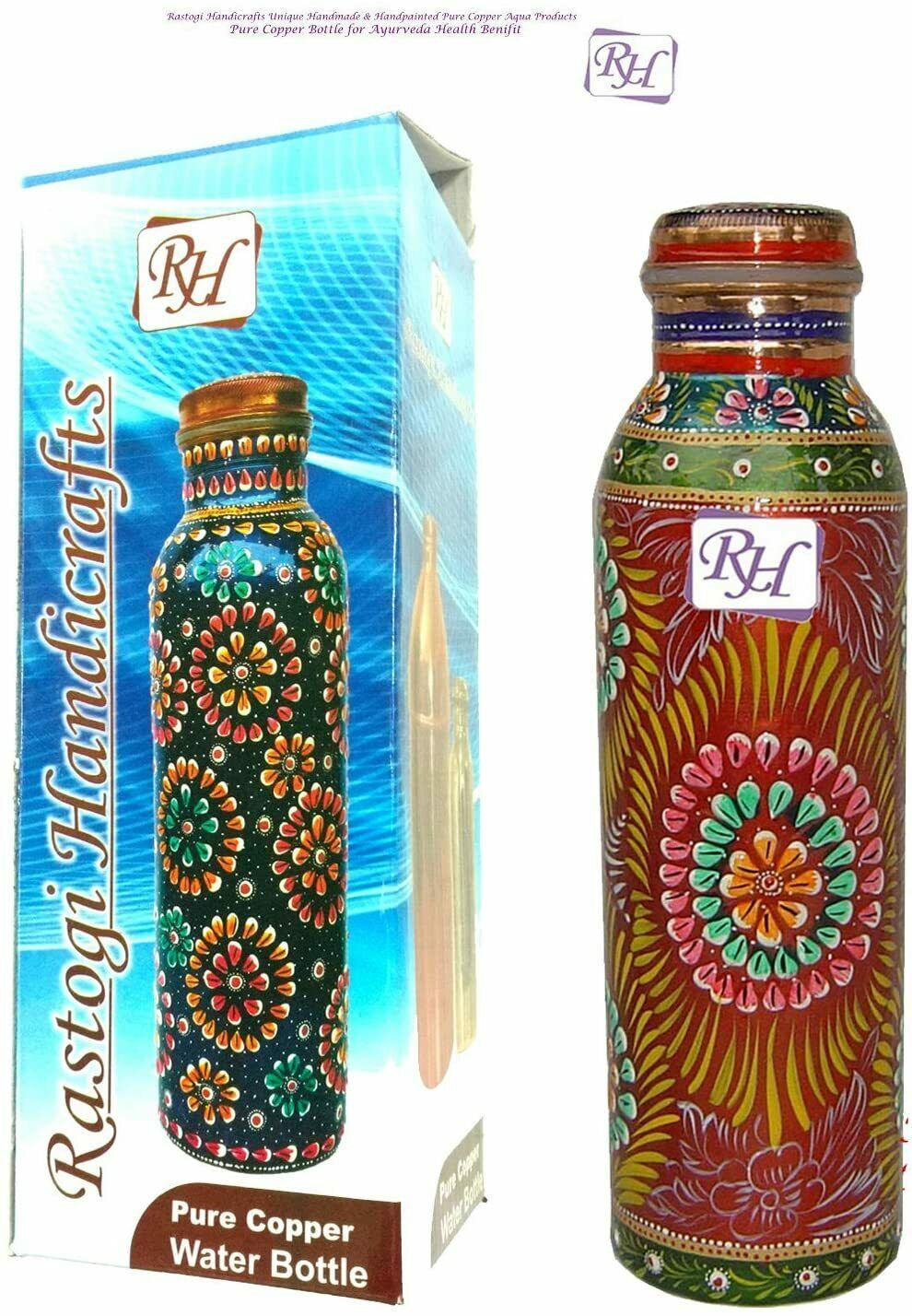 - Pure copper Hand painted bottle Red capacity 33oz / 950 ml for drinking water