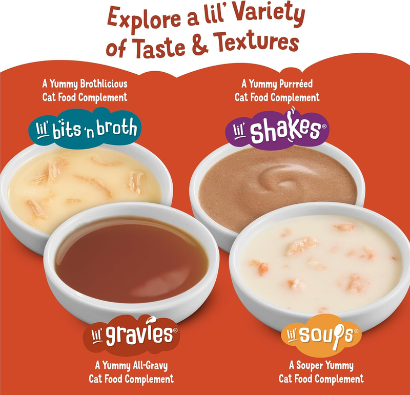 Gently shake pouch before opening. Feed an average size adult cat one pouch per day. Lil' Gravies are intended for supplemental feeding only. This complement may be fed daily along with a complete and balanced cat food diet.