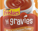 Give your cat what she craves with Friskies Lil? Gravies Roasted Chicken Flavor Cat Food Complement. Made with tasty roasted chicken flavor, this pouch of gravy-licious goodness can be used as a topper for dry food or as a treat between meals. The savory recipe adds excitement to your adult cat?s diet. And when you pair it with a crunchy dry cat food, she will enjoy the texture and tastes down to the last bite. Each appetizing experience is packaged in a single-serving pouch, making it easy to shake, tear and pour your way to a delectable treat for your furry friend. And because cats can never get enough gravy in their bowl, each serving offers moisture to support healthy hydration and whisker-licking flavor. Friskies knows that feeding time is one of the highlights of the day you share with your cherished cat companion. So let your cat dig in. It?s all gravy?with a whole lotta flavor!