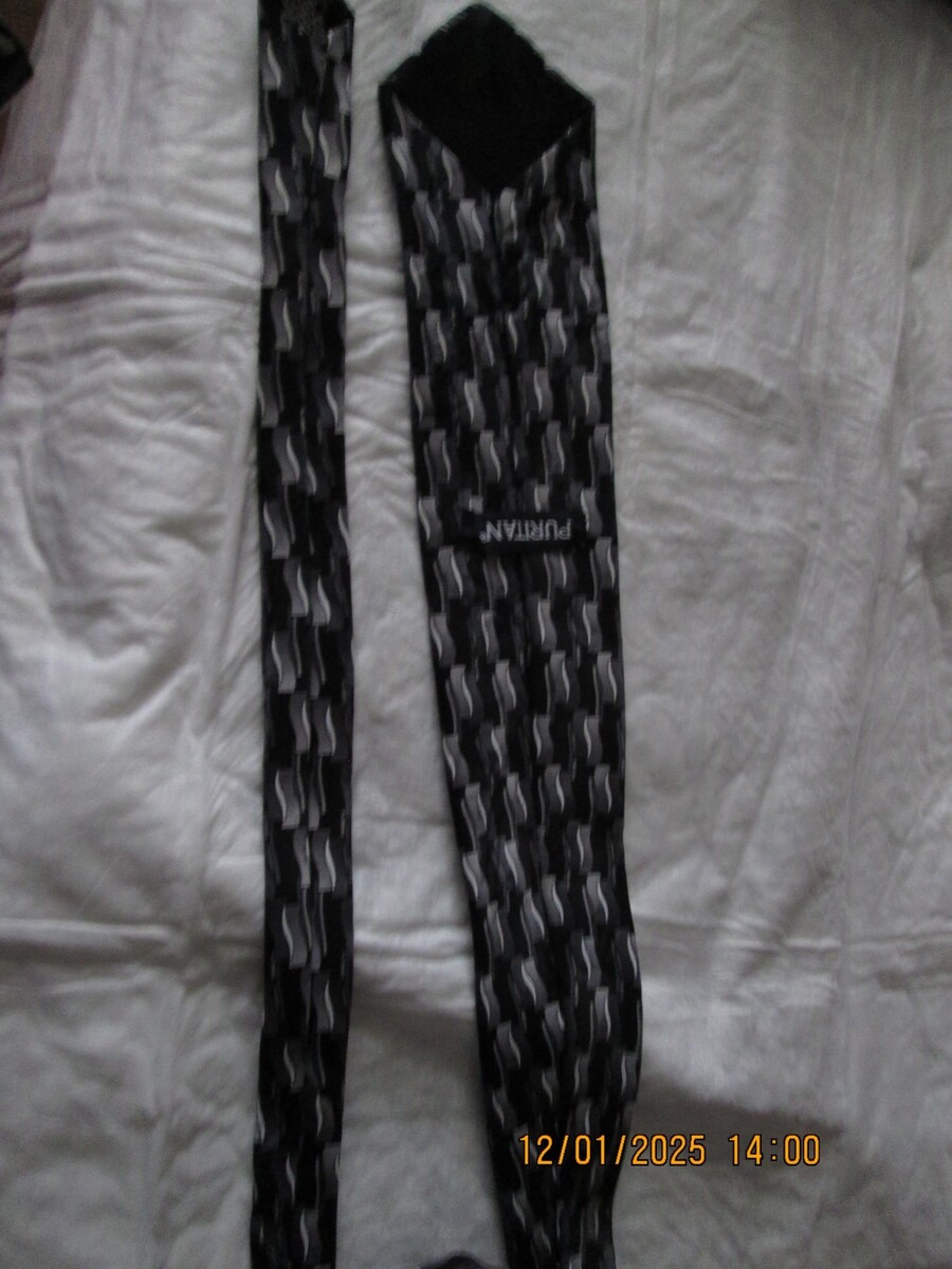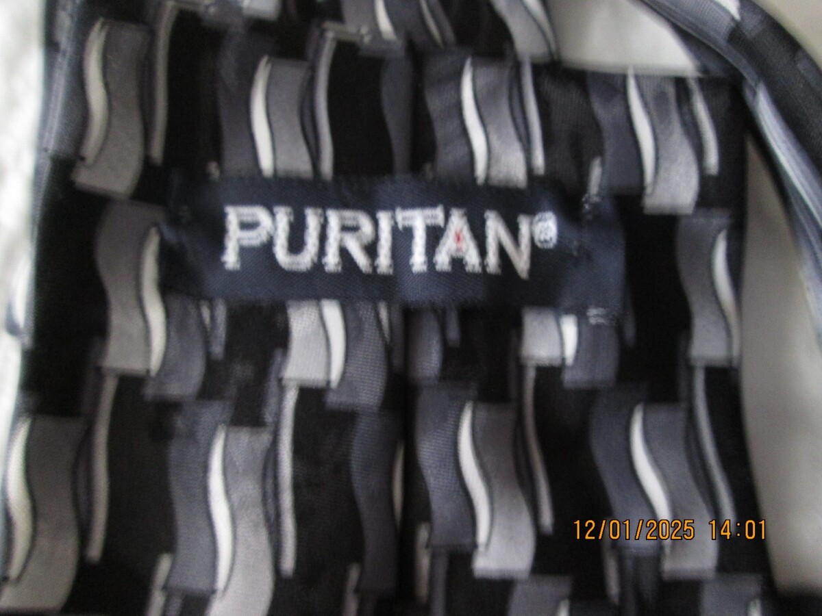 The Puritan Men's Tie Necktie in Black Gray Geometric Checkered Silk is a classic and stylish accessory for men. This designer tie features a timeless geometric pattern, perfect for adding a touch of sophistication to any outfit. Made from high-quality silk and designed in the United States, this tie exudes a vintage charm with adjustable styling for a versatile look. The classic length of 57"-60" makes it one size fits all, making it a must-have item for any man's wardrobe. If you have any questions, please content me. Thank you and GOD BLESS.