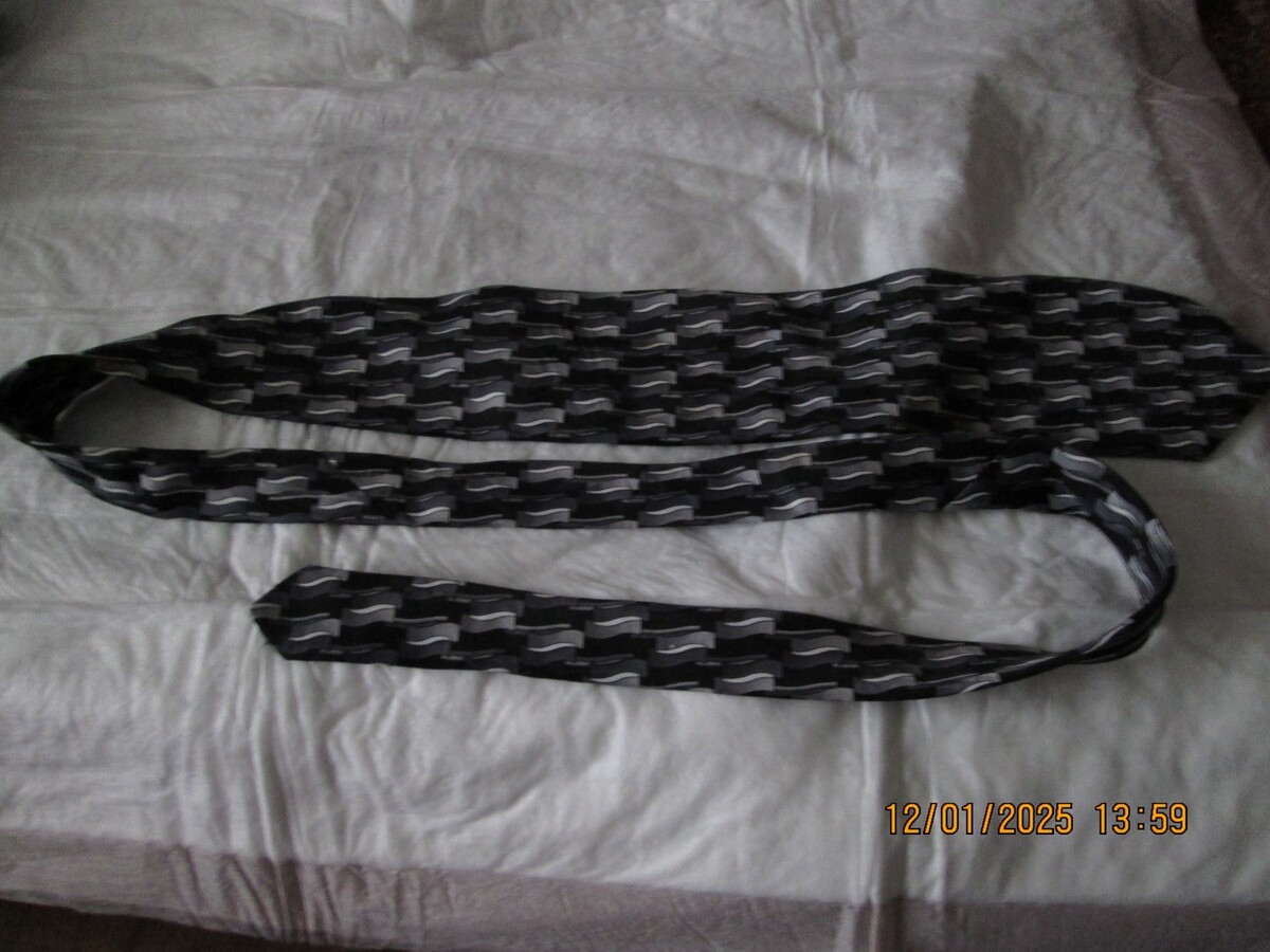 Puritan Mens Tie Necktie Black & Gray Geometric Checkered Silk Classic Length