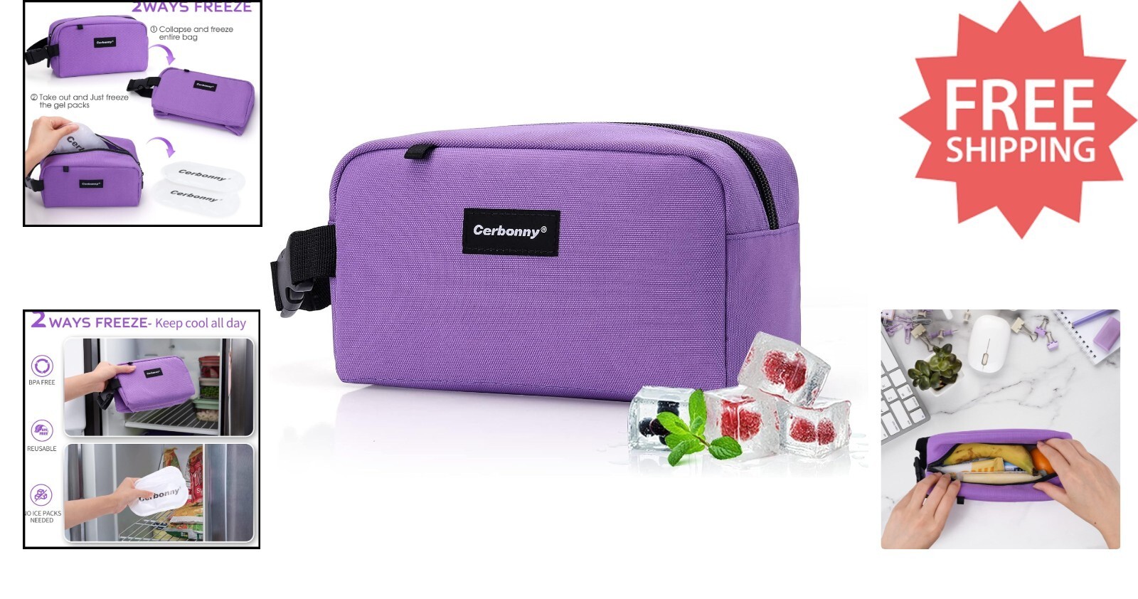 Discover the versatility and convenience of the Cerbonny Lunch Box, designed for both kids and adults. Featuring built-in, detachable gel packs, this compact cooler bag simplifies cleaning and freezing?just pop the gel packs into the fridge or freezer, freeing you from needing separate ice packs. Its innovative dual freezing methods save space and time, ensuring your food stays cool and fresh longer during travel, picnics, or daily use.