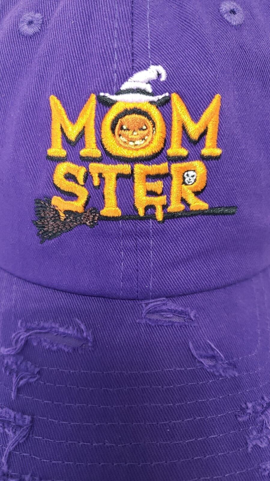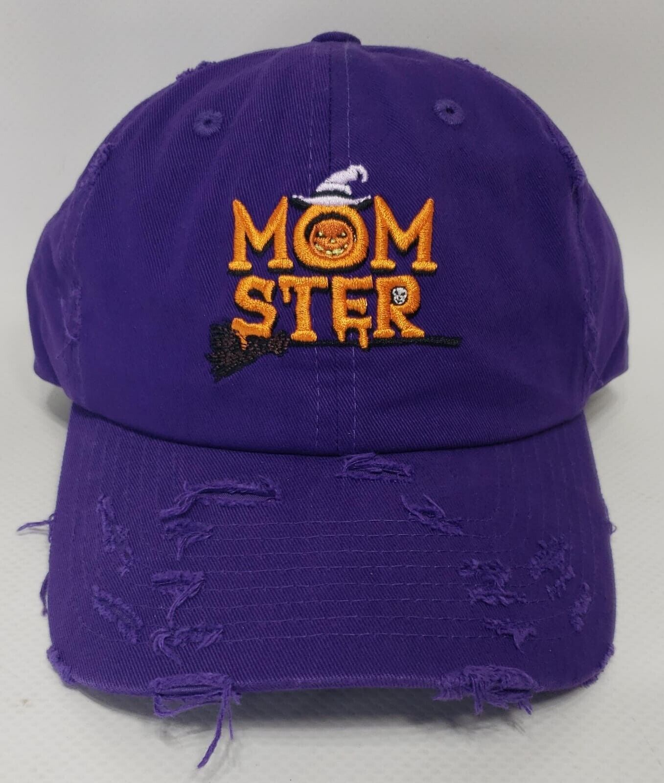 - Purple Momster Halloween Distressed Baseball Hat Cap - Monster Mom