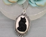 Add a touch of mysterious charm with this silver black cat cameo necklace. Featuring elegant vintage style frame and sleek black cat silhouettes, this furry friend necklace is the purrfect mix of gothic glam and feline flair. Whether you're casting spells or sipping tea, this necklace is all about enchanting style.
