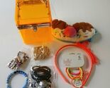 Purse box. Eye mask, hair accessories, corded Silver puffed heart necklace, bracelet, beaded necklace(used) . everything but the beaded necklace is new