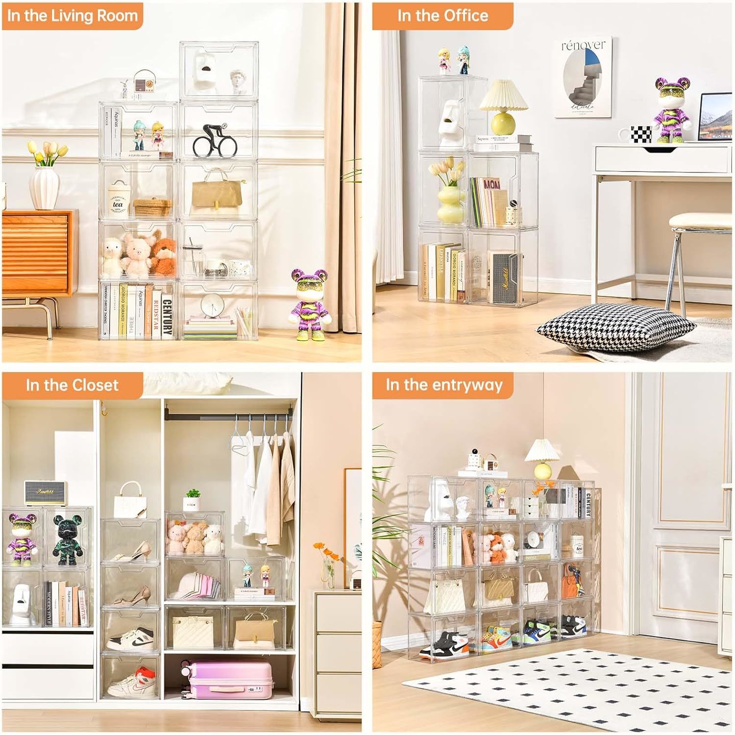 Polypropylene A MUST FOR PURSE COLLECTOR - Step up your purse storage game and secure your collection with clear acrylic display box. Compared to purse hanger, our purse display box can better protect your bag from deformation. Your purses deserve the better care possible. HIGH TRANSPARENCY MAGNETIC DOOR DESIGN - The handbag storage organizer provided 360 clear view of your favorite bags, all-round perspective display. With magnetic door, easy to open and close the purse containers, find the right shoes in seconds without opening all box, save your time, stylish and elegant. STURDY STACKABLE STORAGE BINS - Made of hard acrylic to ensure stability, thickness up to 6mm, smooth surface and rounded corner makes it very comfortable to touch. Featuring a slot design, these 5 Pack clear display cases allow you to help maximize your space, stack and store your handbags to suit your space and personal preference. LARGE CAPACITY FOR PURSE DISPLAY - The upgraded handbag storage each size is 14.17? x 8.66? x 10.63?, can be placed horizontally or vertically, such as handbag, shoulder bag, and wallet. Also a good ideal for organizing small daily items such as scarves, clothing, shoes, crafts, toys, books and more. ASSEMBLE AND SERVICE - Assembly was so easy, no tools required, each box can be installed in minutes. Due to the uncertainty of transportation, there may be damage at the time of receipt. If there is any problem with the product, we are happy to provide a return and exchange service.