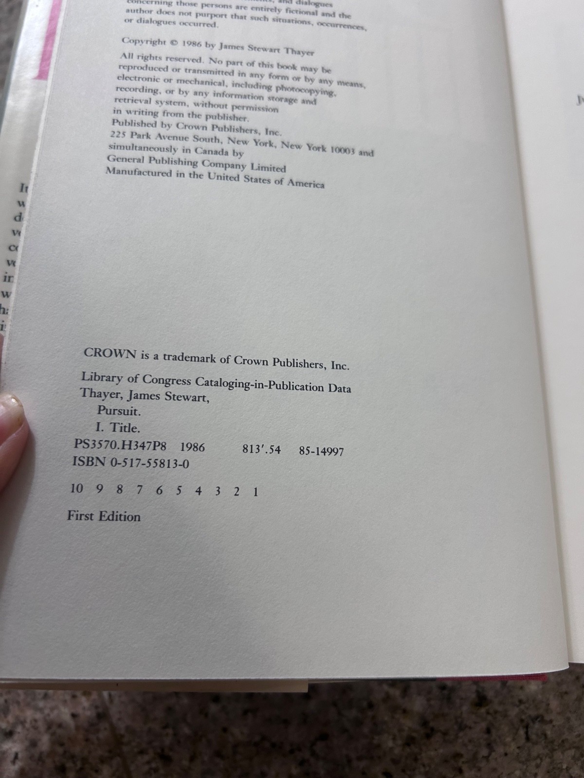 - Pursuit - Hardcover By Thayer, James Stewart first edition AUTHOR SIGNED