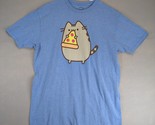 - Pusheen Eating Pizza Men's XL T-Shirt Blue Heather Short Sleeve Cute Cat Kawaii