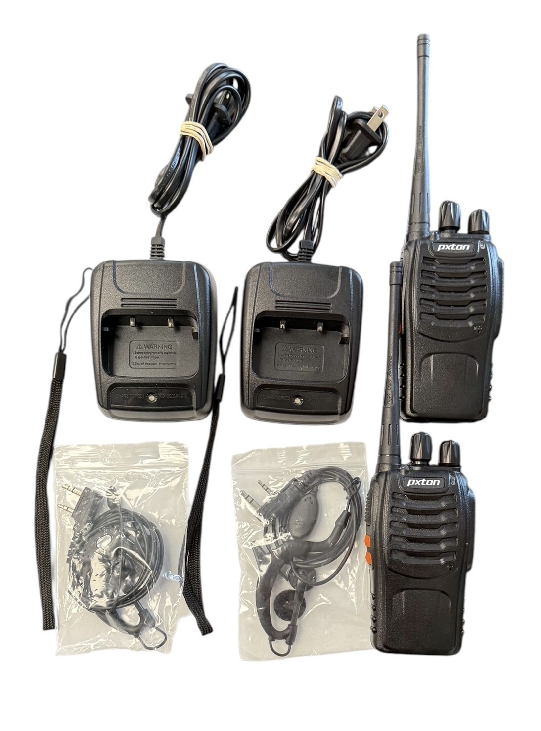 Type: 2 way radioBrand: PxtonModel number: PX-888SColor: BlackSize: 2 WalkiesCondition:Used