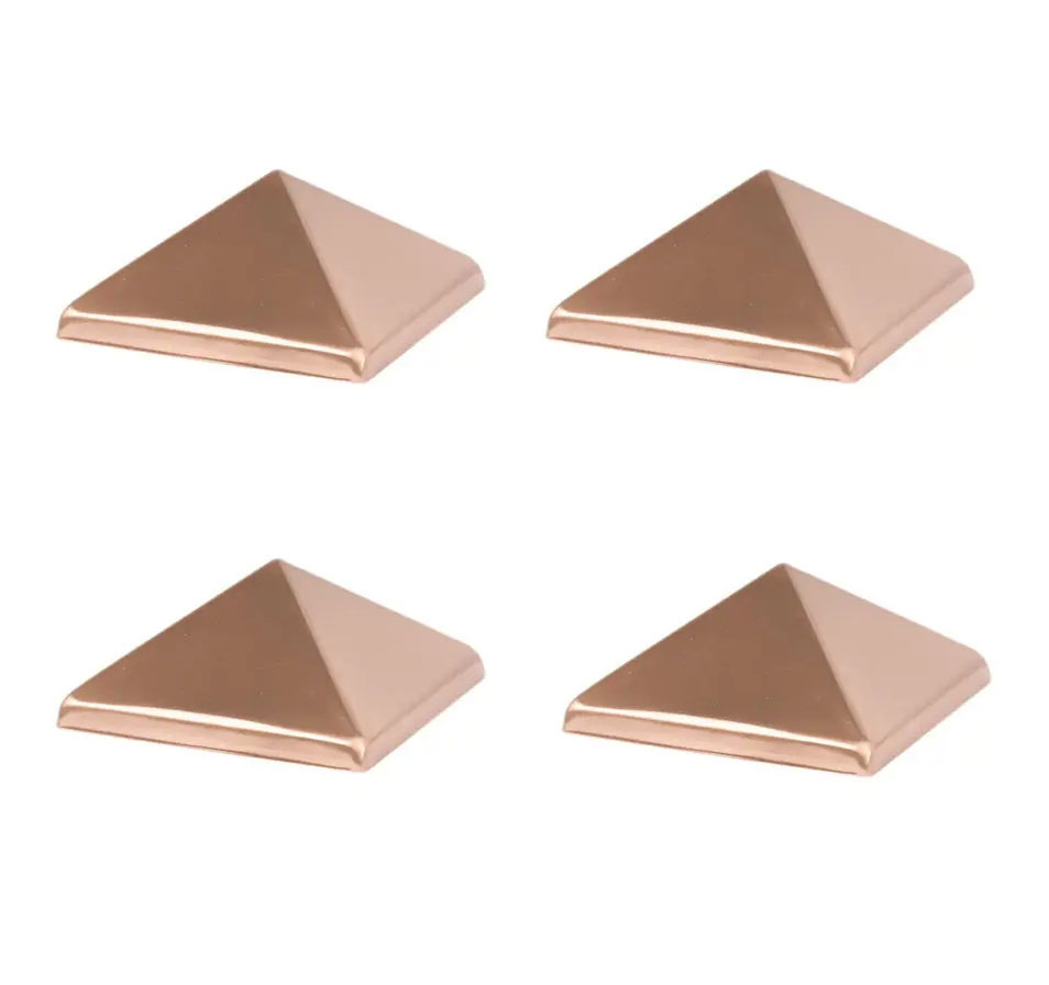 The Waddell 230 pyramid post cap is a prefinished copper cap engineered to protect and enhance 4x4 inch wood or composite posts on decks, porches, fences, and pergolas. Crafted from solid copper with a durable brown patina finish, it resists corrosion, UV degradation, and weathering while developing a natural, aged appearance over time that complements rustic, modern, and traditional outdoor designs. The pyramid shape provides a clean, architectural accent while shielding the top of the post from rain, snow, and debris ? preventing water ingress that leads to rot and structural decay. Lightweight yet robust, it installs without tools by simply sliding over the post and securing with adhesive or screws (not included).