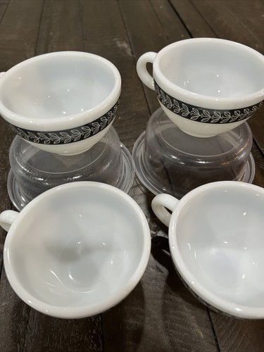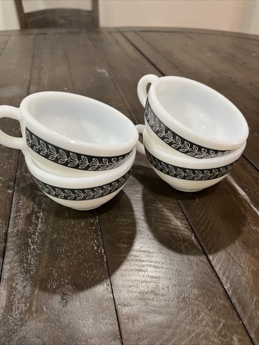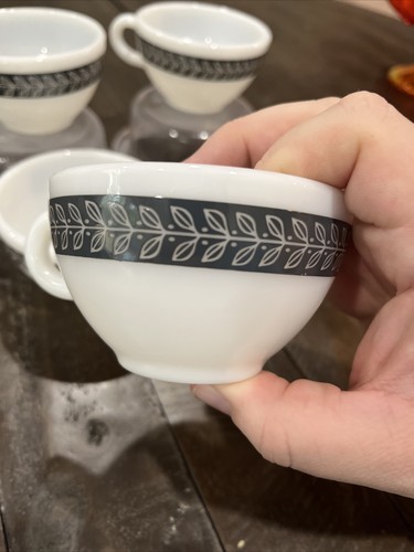 - Pyrex Corning Grecian Gray White Laurel Leaf Mug USA SET OF 4 Cups