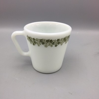 - Pyrex Green Crazy Daisy Spring Blossom Milk Glass Coffee Cup Mug