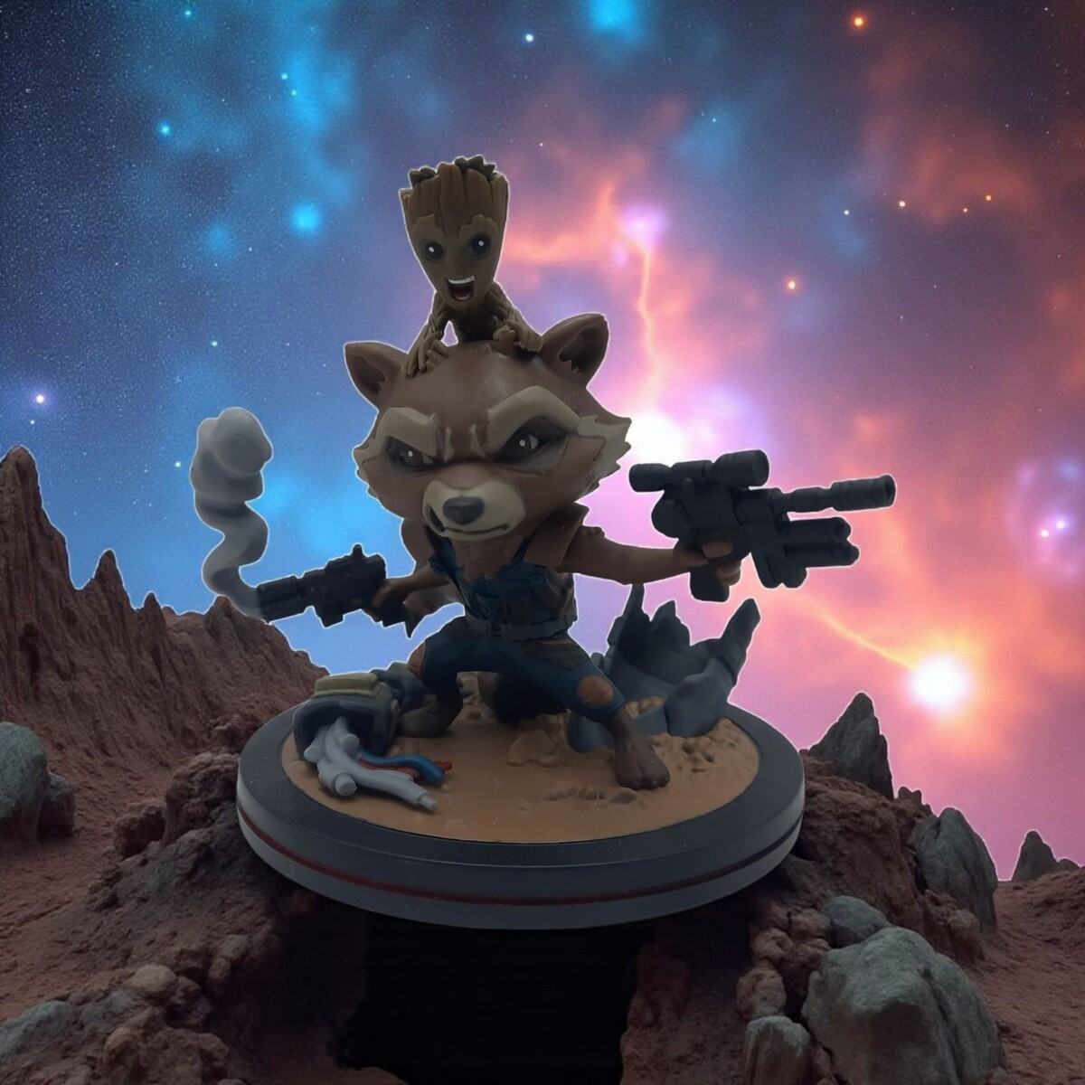 - Q Fig Rocket Raccoon And Groot Guardians Of The Galaxy 2 Marvel Figure Preowned