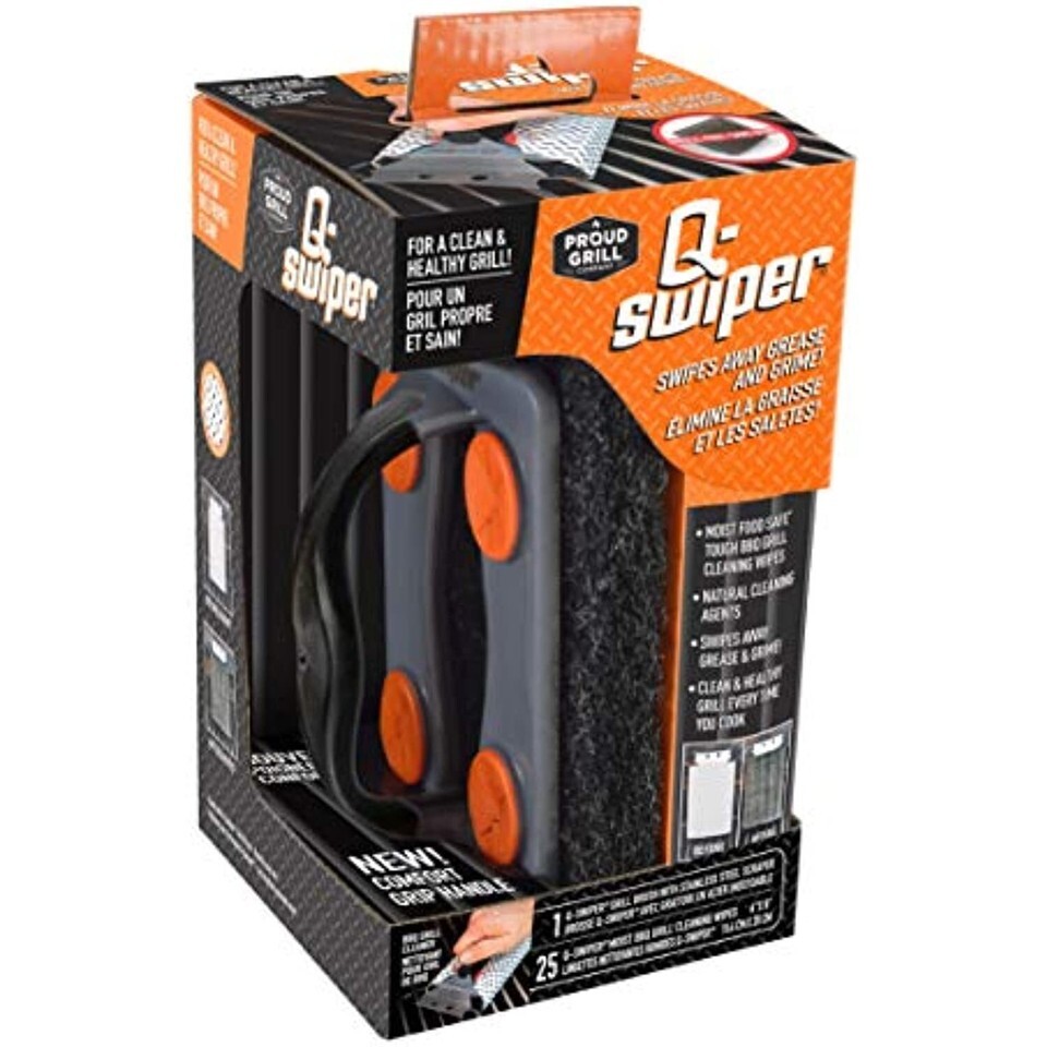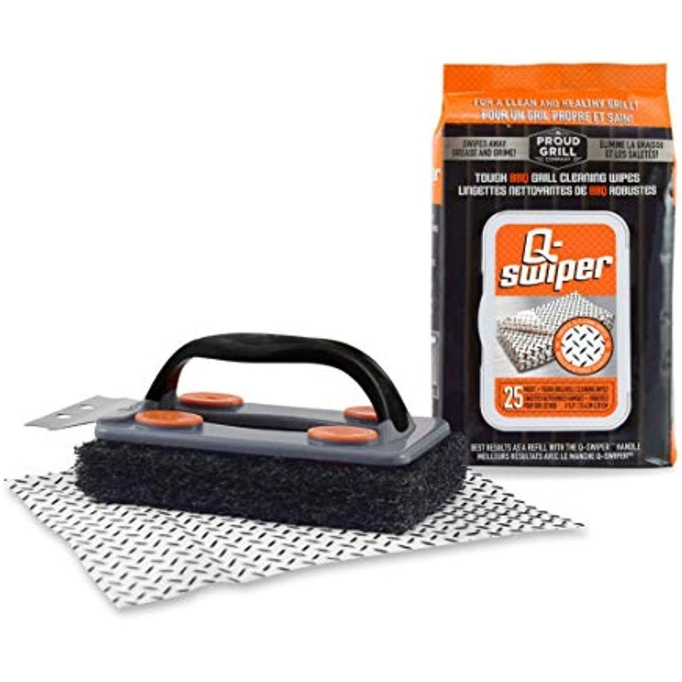 Q-Swiper BBQ Grill Cleaner Set - 1 Grill Brush with Scraper and 25 BBQ Grill Cleaning Wipes | No Bristles Wire Free | Safe Way to Remove Grease and Grime for A Clean and Healthy Grill!