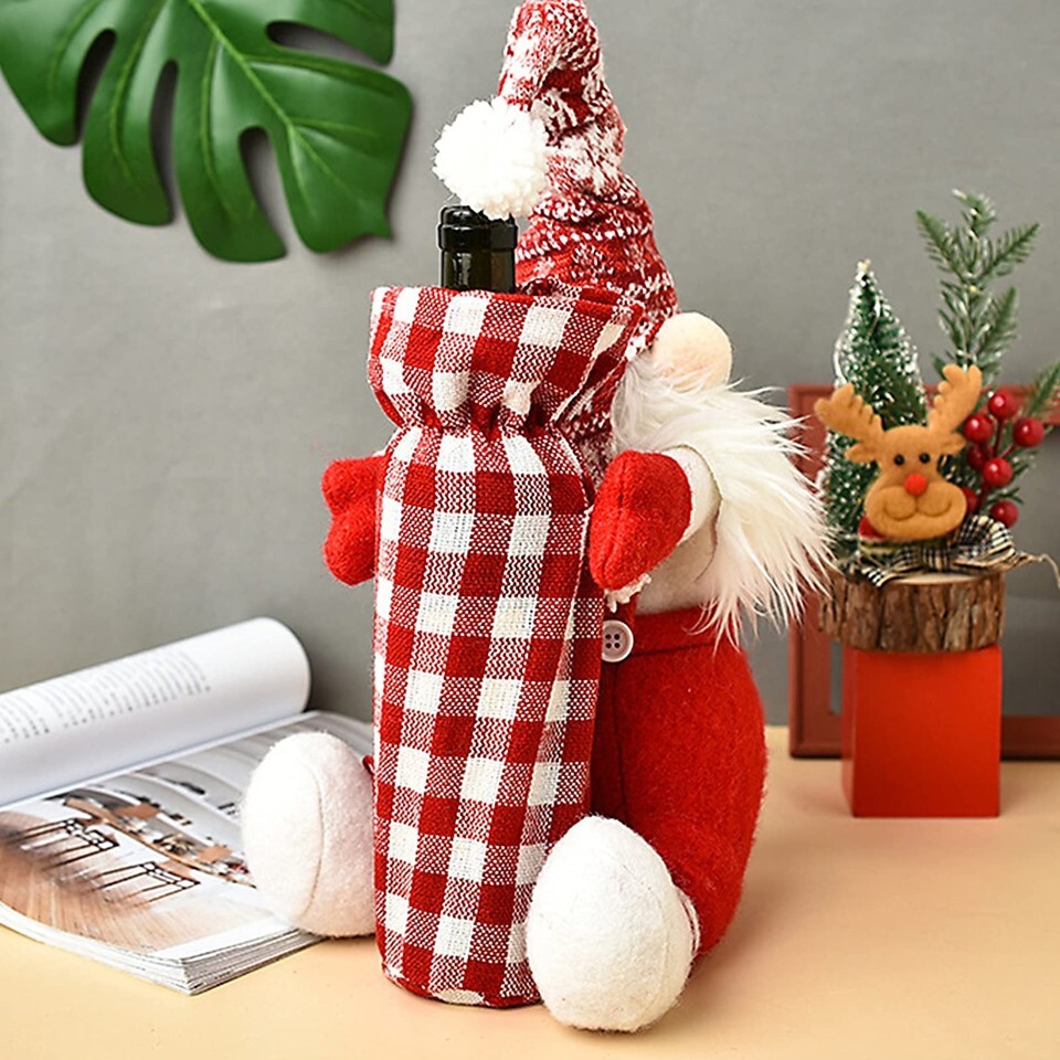 - QSDGFH 2 Pcs Christmas Knit Wine Bottle Cover, Gnome Champagne Bottle Bags, San