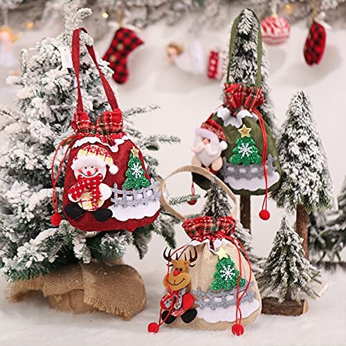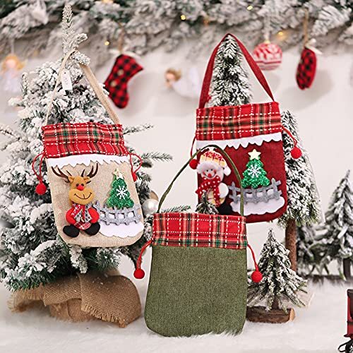 - QSDGFH 3 Pack Christmas Favor Bag with Drawstring, Linen Gift Bag with Snowman E