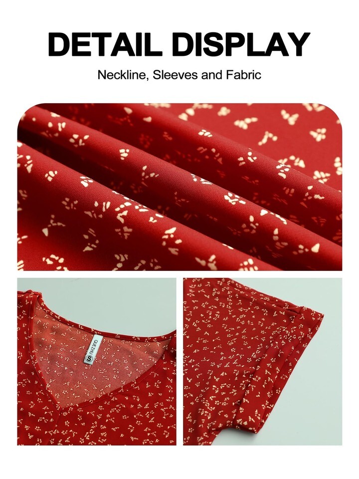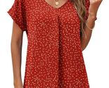 - QUEZHU Women's V Neck Short Sleeve Chiffon Blouse Wine Red Size Small