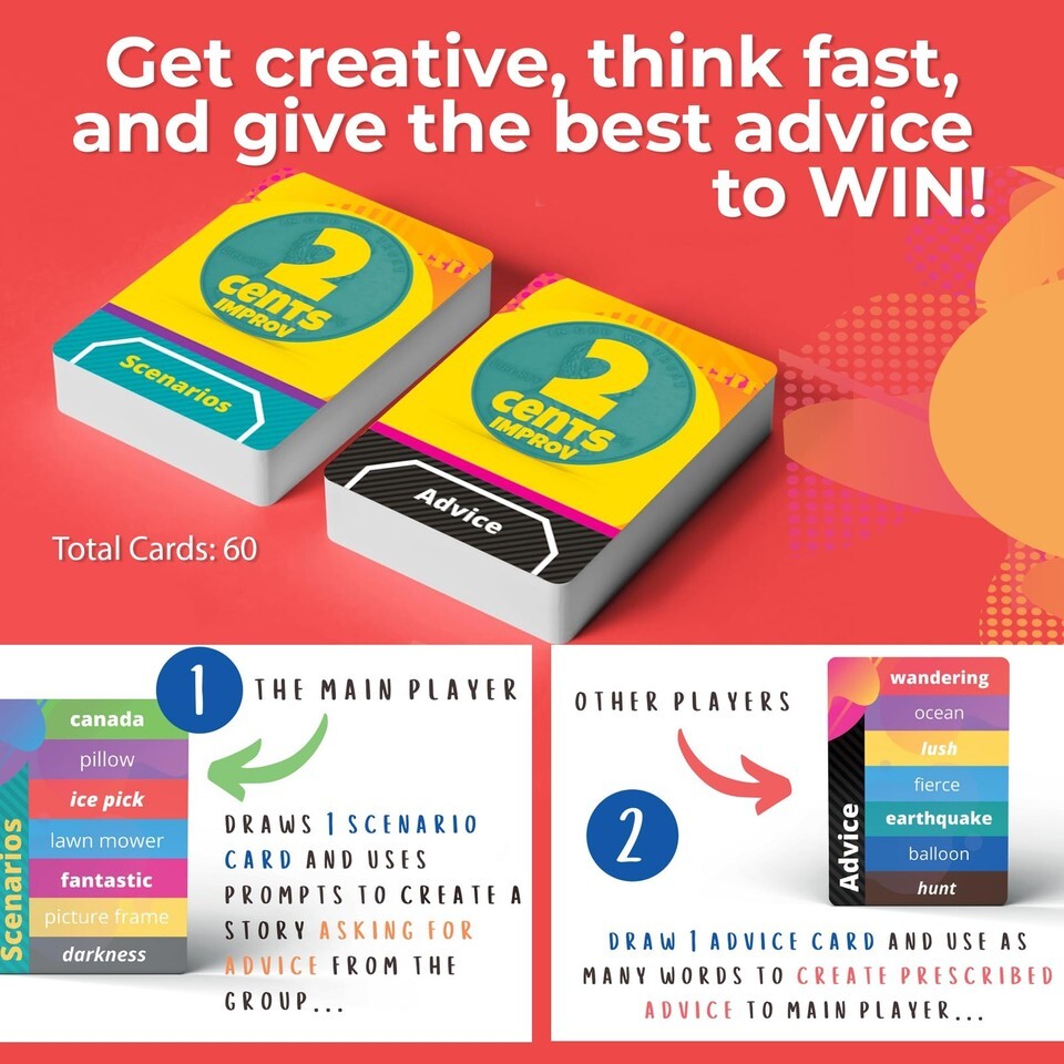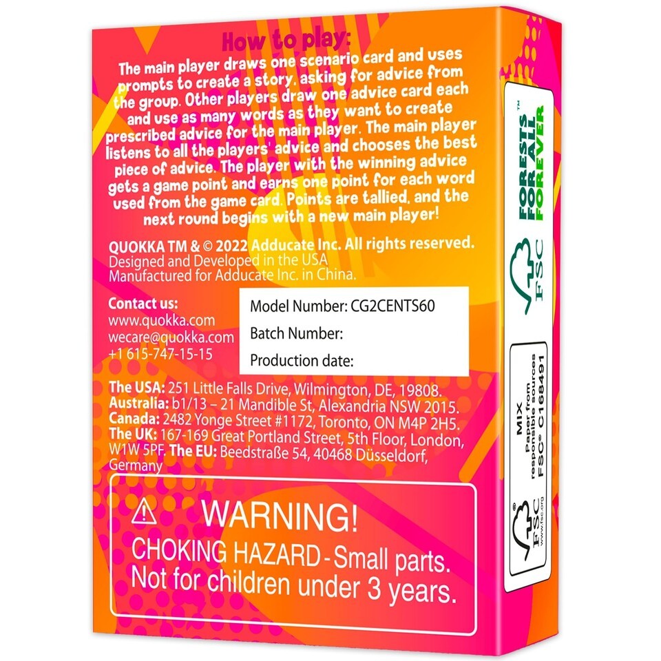 - QUOKKA 2 Cents Game Night Story Card Improv Game 60 Cards 3-8 Players