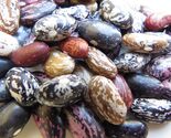 Every season I am astounded by the beautiful assortment of beans I collect from this variety, which we developed a number of years ago. Some are solid color, but most are dazzling, minature works of art. They are also darn good eating. Expect a big harvest in about 75 days. They can also be eaten as snap beans, but I prefer to wait and dry them down. Pods rarely shatter. The vines are vigorous and hold up well even under damp conditions. (50 seeds per packet - about an ounce)