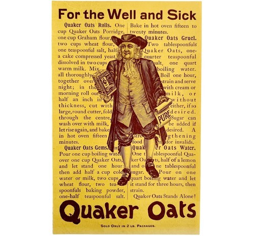 - Quaker Oats For Well And Sick 1897 Advertisement Victorian Cereal Yellow DWKK9