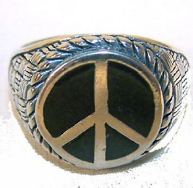 - QUALITY PEACE SIGN NEW SILVER BIKER RING BR45R mens fashion jewelry womens rings