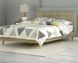 - Queen Size Mid-Century Beige Upholstered Platform Bed