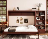 - Queen Size Murphy Bed with Adjustable Storage, Shelf, Drawer, Walnut