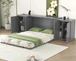 Queen Size Murphy Bed with Shelves, Cabinets, USB Ports - Gray
