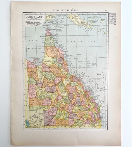 - Queensland Australia Map Lithograph 1909 Hammond Oceania Print LGADMap
