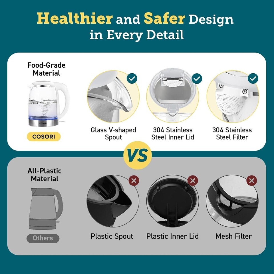 Safe and Smart: Equipped with automatic shut-off and boil-dry protection for your peace of mind.