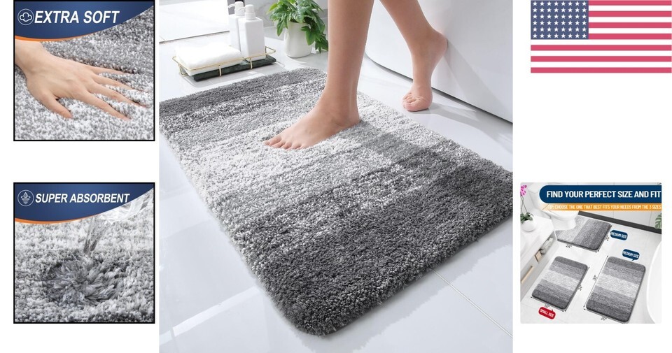 - Quick-Dry Microfiber Bath Mat 24" x 16" - Soft Plush, Rubber Backing for Safety